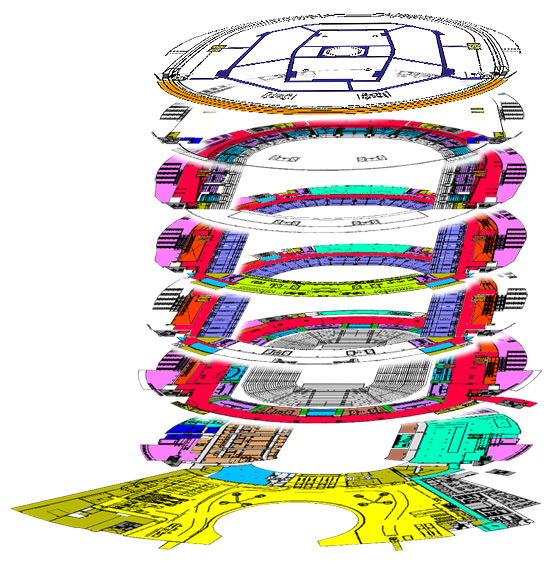 The Evolution Control System installed at The O2 operates over 3000 lighting circuits with individual control of hospitality rooms, concession areas and general circulation space as well as the main Arena itself. Localised operation is provided by control plates while a graphics based PC software provides control of the whole venue including the ability to drill down to individual areas and obtain status feedback.