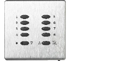 The Control Plate provides eight configurable buttons allowing scene recall, impulse and toggle and two multi-function buttons providing On & Raise and Off & Lower with integral IR receiver.