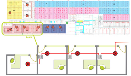 An installation is divided into logical areas which may be dictated by individual tenancies or the physical layout and practicalities of the installation. Each area is managed by an Area Controller which in turn are connected together via a dedicated TCP/IP backbone or the shared building IT network.