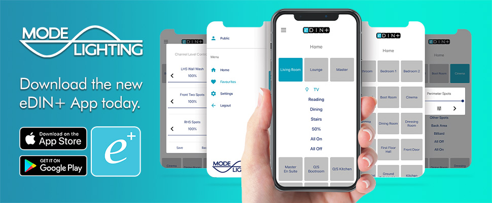 Available now on the App Store and Google Play – the new eDIN+ application from Mode Lighting.
