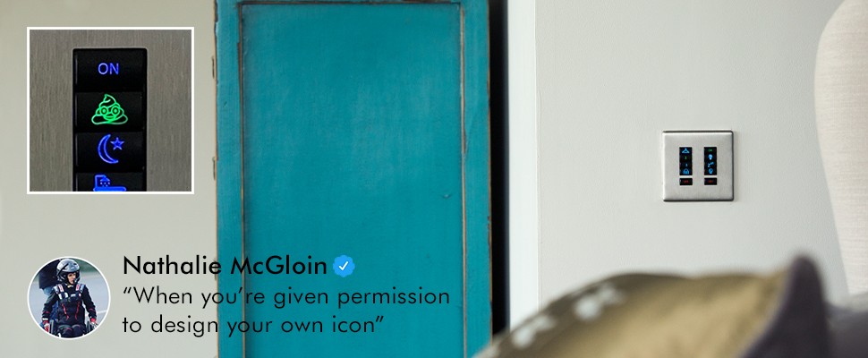 Nathalie was particularly pleased with being able to design her own custom symbols, as shown in the Tweet above. Commenting on how simple the plates are to use and understand. “The iCON Plates are SO simple to use with the engraved icons indicating which buttons will operate the different scenes available.”