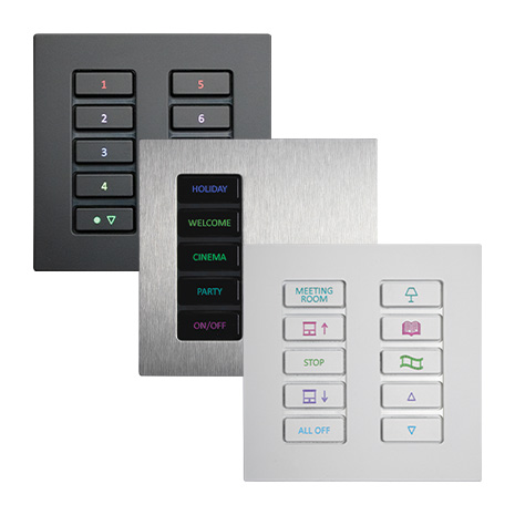 All keypads connect using the M-BUS network and systems can be controlled to allow any button to control any single group or groups of lighting as required.