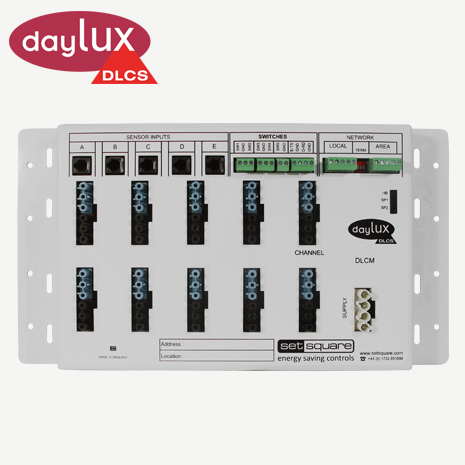 The DLCM3 is a ten way pluggable Lighting Control Module (LCM) programmed by front end software as part of the Daylux Lighting Control system. Each output provides power, a dimming signal and a switched power feed for the emergency battery to the light fitting. Presence and light level sensors are wired directly back to the five sensor ports using plug and play RJ12 leads. Each unit also incorporates a programmable feed through relay which enables a centralised manual test facility for the emergency lighting.